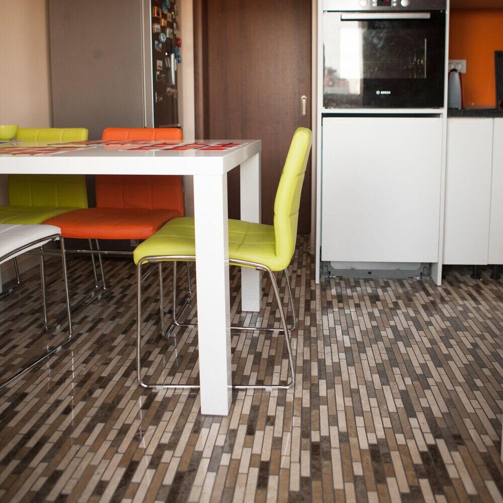 Vreau sa montez pe orizontala un mozaic intr-o zona de birouri, ce imi este indicat travertin sau marmura?
