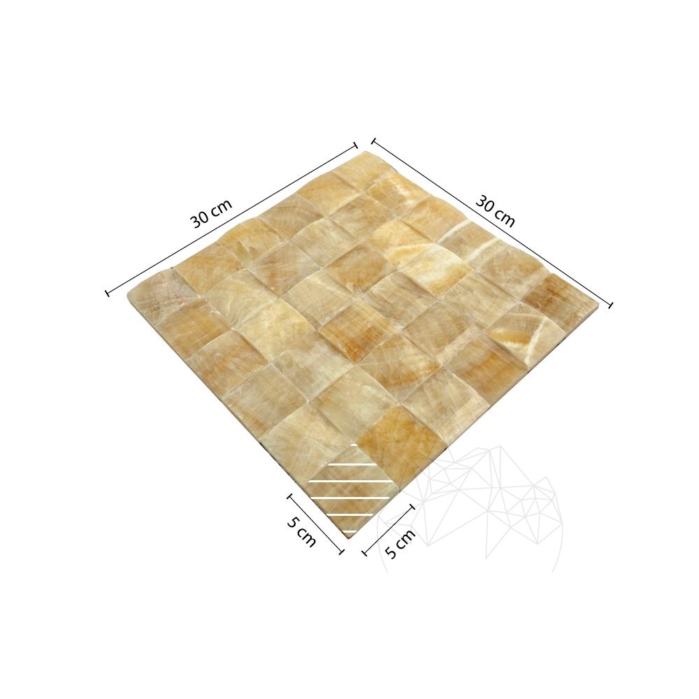 Descoperă frumusețea unică a mozaicului Onyx Honey Pyramid, alegerea ideală pentru amenajări interioare decorative.