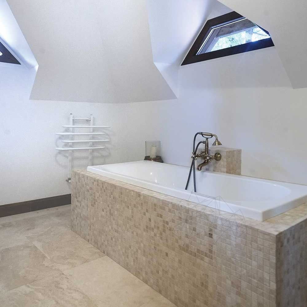 In materie de amenajari interioare, aspectul polisat al travertinului Classic nu poate fi egalat decat de competitorul sau, marmura. Aceasta piatra naturala induce o atmosfera primitoare si se poate asocia cu o larga varietate de pardoseli din travertin. Astfel, cu acest produs se pot placa pereti de bai, bucatarii, spa-uri (spatii umede) sau chiar sufragerii si holuri. Functioneaza si in placarile orizontale: pardoseli, blaturi, glafuri, chenare decorative etc. Un alt avantaj major oferit amenajarilor interioare este instalarea usoara a acestui mozaic din travertin Classic, polisat. Indiferent de mediu, privat sau public, mozaicul din travertin Classicm cu finisaj polisat, scoate din anonimat orice amenajare interioara, conferindu-i o personalitate aparte.