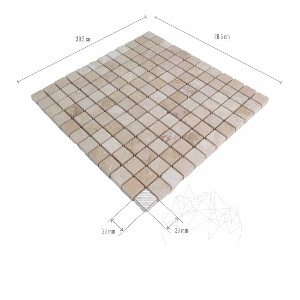 Mozaic Travertin Classic Polisat, 2.3 x 2.3 cm