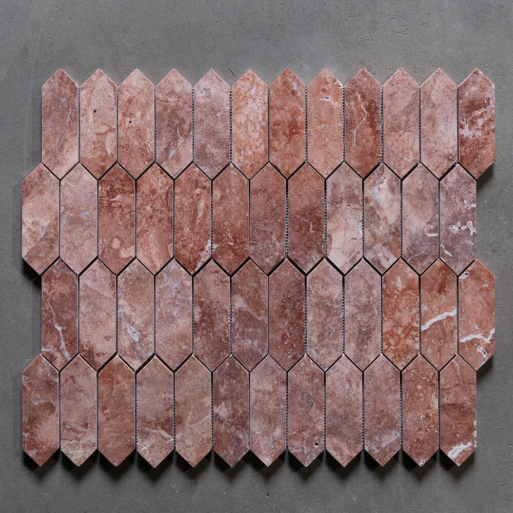 Mozaic din travertin Opium Red polisat – eleganta si versatilitate pentru spatii moderne