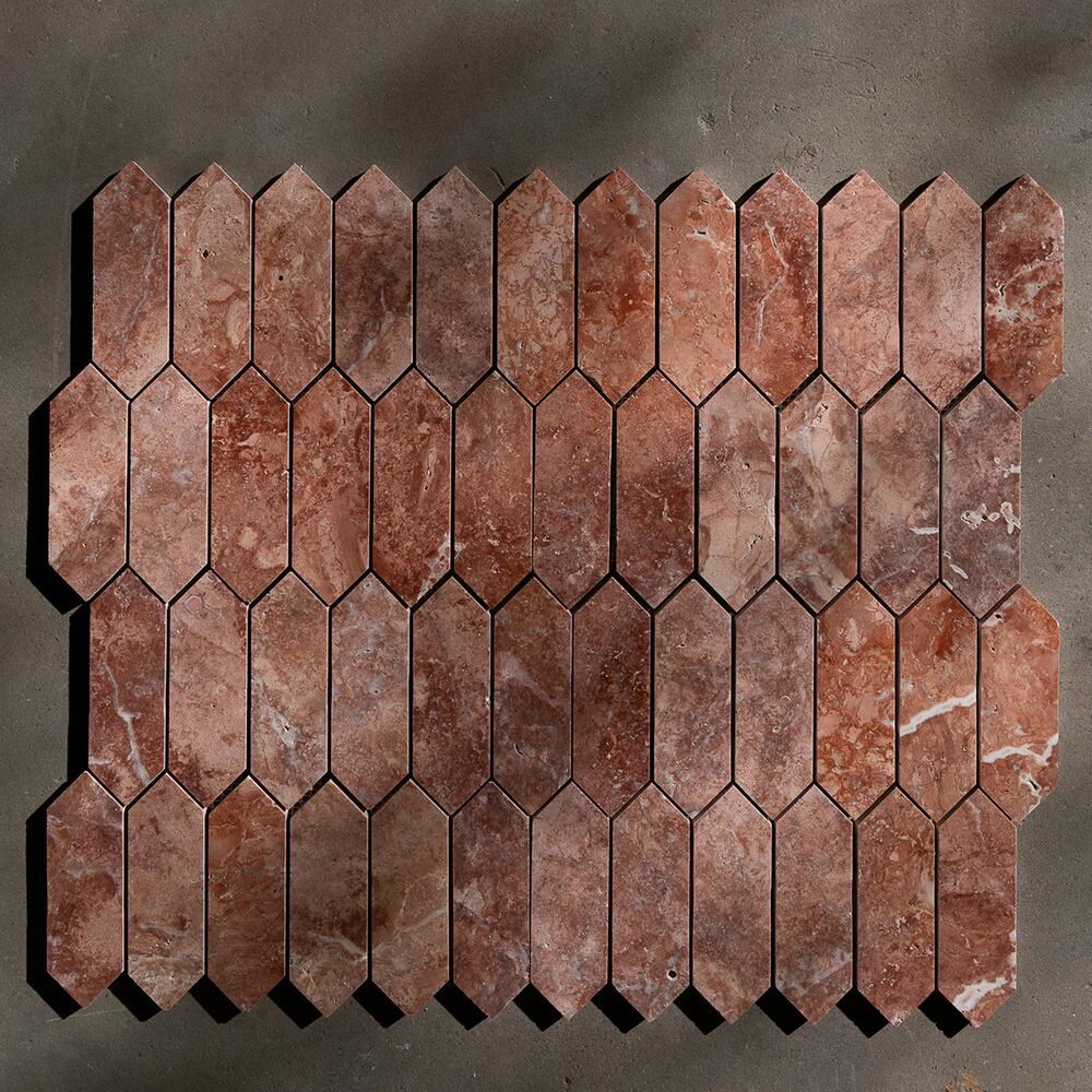 Mozaicul din travertin Opium Red Pillar, cu dimensiunile de 30.5 x 28 cm, aduce in orice proiect de design interior o nota distincta de rafinament. Realizat din piatra naturala cu o cromatica de rosu intens, acest mozaic se remarca prin textura sa unica si aspectul polisat, perfect pentru a crea accente vizuale sofisticate.
