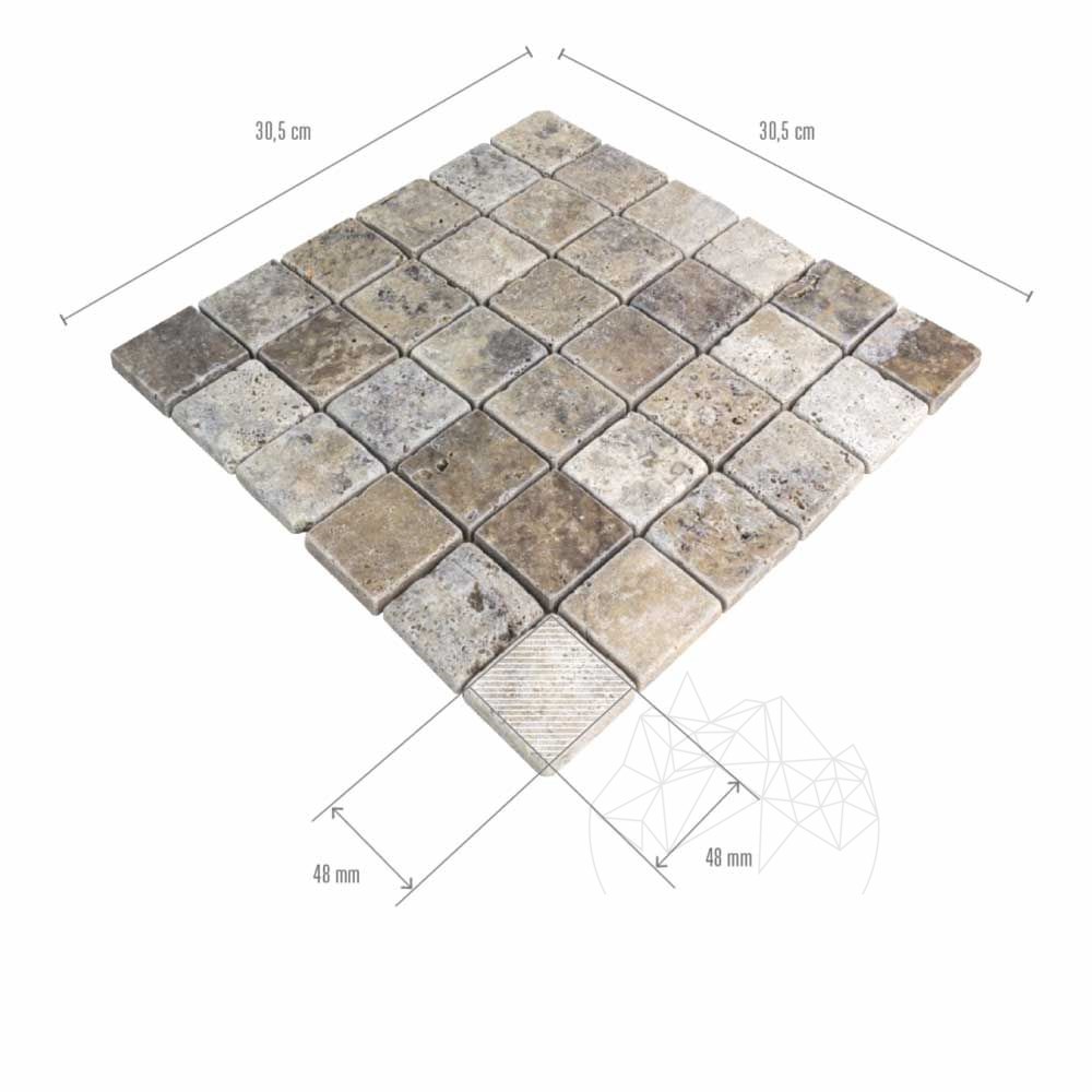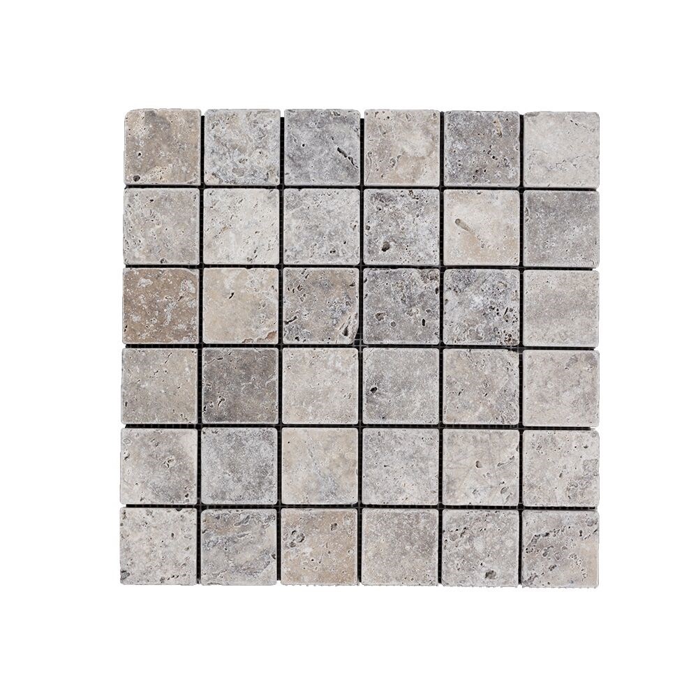 Mozaic Travertin Silver Antichizat, 4.8 x 4.8 cm