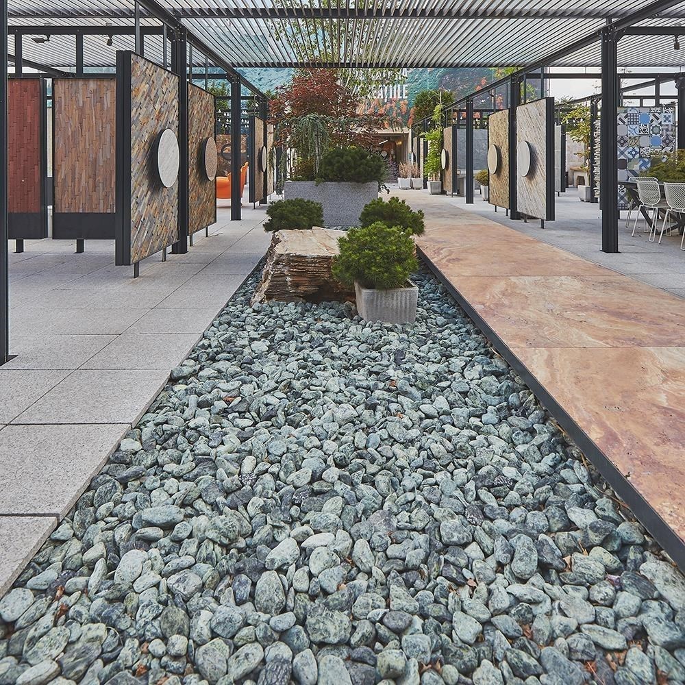 Monotonia unui spatiu se transfera si asupra psihicului uman. Omul poate deveni si el plictisit, fara chef… De aceea este recomandata realizarea unui mediu cat mai dinamic, cat mai in ton cu personalitatea fiecaruia. Pietrisul poate schimba aspectul unui curti intr-un fel extrem de simplu. O singura fasie de pebble din marmura verde pe o latura a curtii dinamizeaza spatiul, schimba perspective. Din acest produs atat de vibrant se pot realiza alei, suprafete decorative, forme libere, in functie de creativitatea fiecaruia. Avand dimensiuni mici (1-2 cm), pebble-ul din marmura verde se manipuleaza cu mare usurinta, putand fi asezat direct pe gazon sau pe pamant, dupa ce iarba s-a indepartat. Gama de pietre decorative oferita de PIATRAONLINE este foarte mare si veti gasi destule alte materiale care se pot asorta perfect cu aceste pietre mici si verzi, cu venaturi albe, din marmura Verde. Potentialul lor este urias, folosindu-se in interior si exterior, in spatii publice sau private. Toate, pentru o dinamica revigoranta si eleganta.