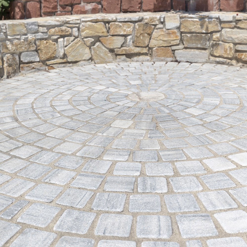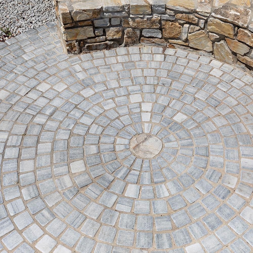 Cu un aspect de mare clasa, in tonuri variate de alb si gri, aceasta piatra cubica din marmura Kavala antichizata (marginile rotunjite) ii satisface chiar si pe cei mai pretentiosi in materie de pavaj exterior. Reprezinta solutia perfecta in realizarea aleilor pietonale, tersaselor exterioare sau pentru intrari in garaje etc. Daca vorbim de amenajari de pe domeniul public, piatra cubica din marmura Kavala este folosita cu mare succes si impact in construirea de bulevarde, parcuri, ronduri, piete si piatete etc. Piatra cubica se monteaza pe pat de nisip sau cu sapa semiumeda, cu sau fara rosturi. Atunci cand duritatea pietrei intalneste eleganta formelor, rezultatul obtinut este deosebit, iar in folosirea pietrei cubice din marmura Kavala nu exista loc pentru compromisuri. Indiferent de natura spatiului care urmeaza a fi pavat – trotuare, zone carosabile, alei sau intrari in garaj, produsul intrece toate standardele de rezistenta, calitate si stil.