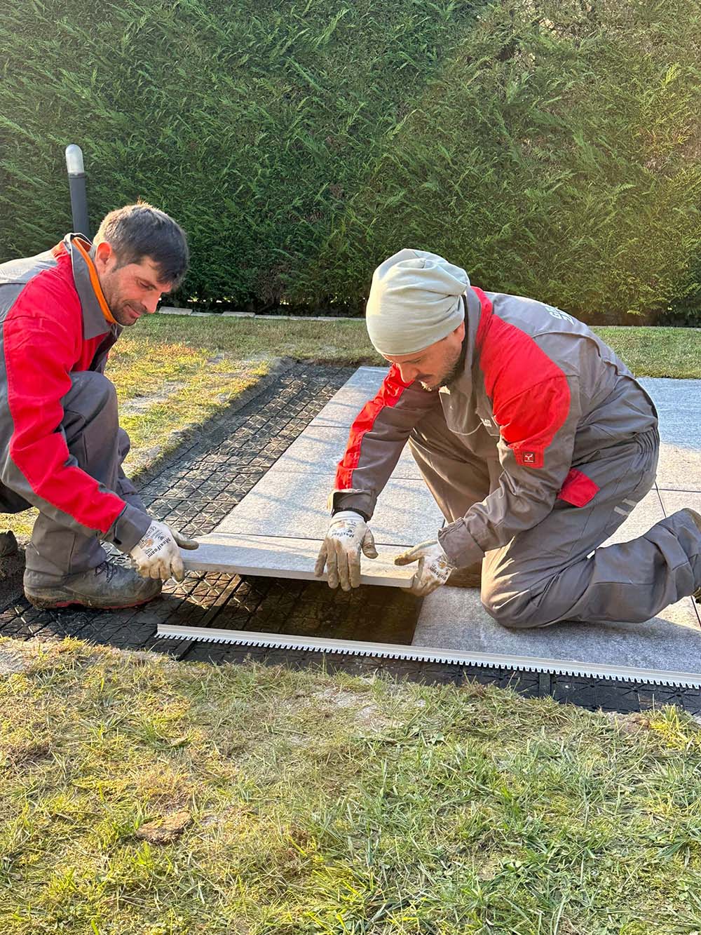 Tehnologia nu este nouă — grădinile japoneze de piatră, drumurile romane cu pietriș compactat sau aleile de grădină victoriană funcționau după principii similare —, dar versiunea contemporană a rafinat considerabil atât performanța hidraulică, cât și vocabularul estetic. Astăzi, un covor drenant poate fi livrat în panouri prefabricate, cu piatra fixată pe o plasă de fibră de sticlă sau pe suport textil, gata de montaj ca orice placă de gresie.