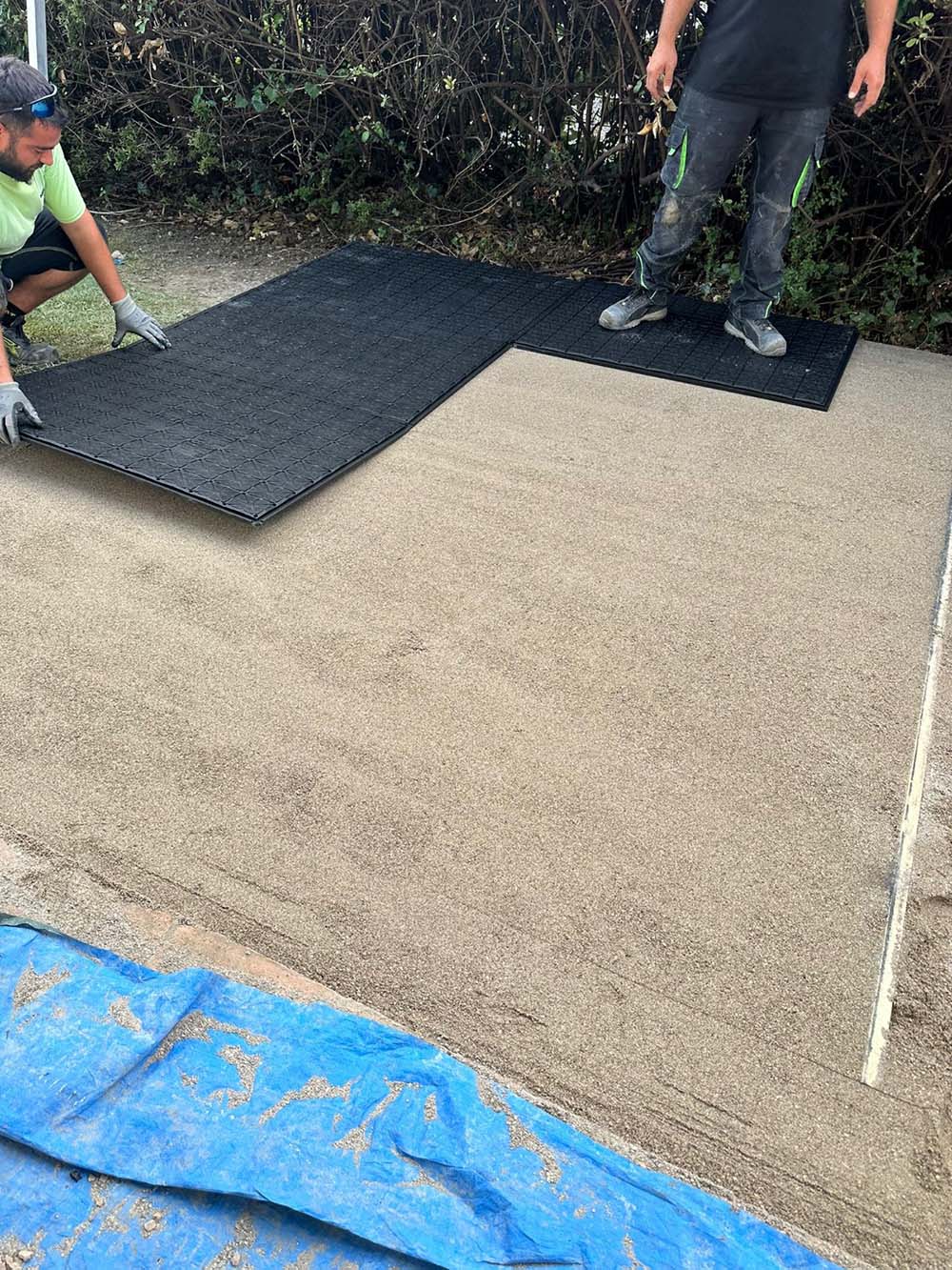 Teritoriul de elecție al covorului drenant cuprinde terasele rezidențiale și comerciale de nivel înalt, aleile de grădină, spațiile exterioare ale hotelurilor boutique, curțile interioare ale ansamblurilor rezidențiale și zonele de acces în vilele cu peisagistică elaborată. Este, prin definiție, o soluție de exterior — performanța sa hidraulică devine relevantă acolo unde există precipitații, irigare sau risc de acumulare a apei.