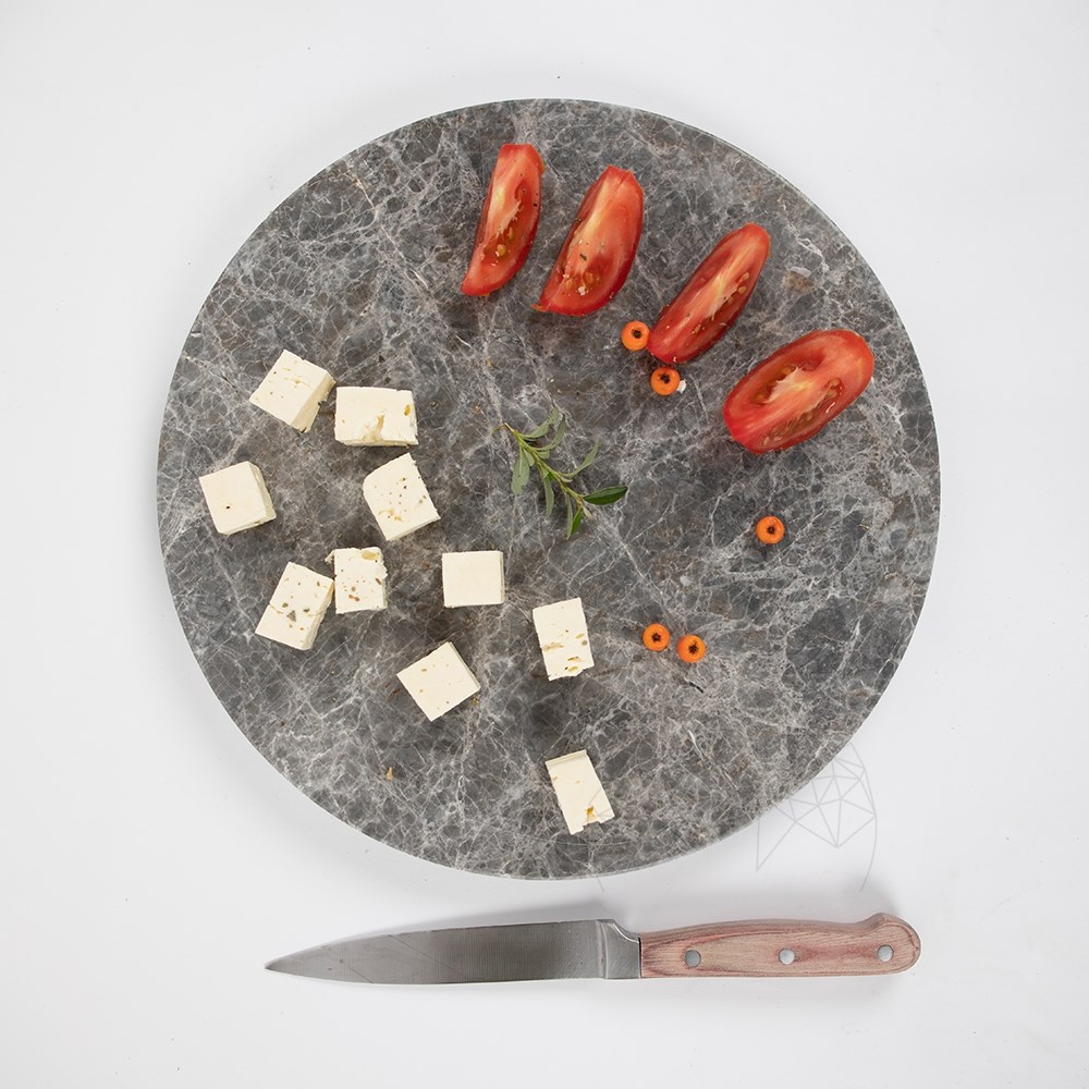 Tocator Rotund din Piatra Naturala pt. Legume, Fructe, Carne, Diametru 28 Cm