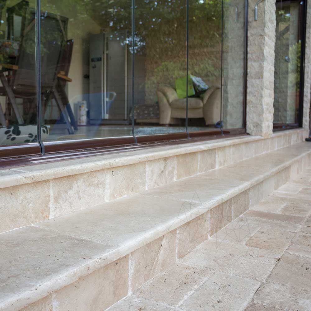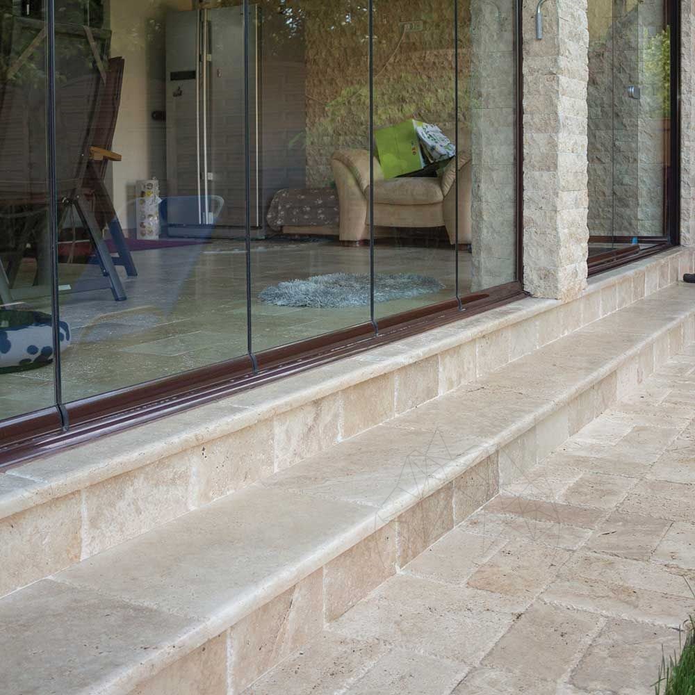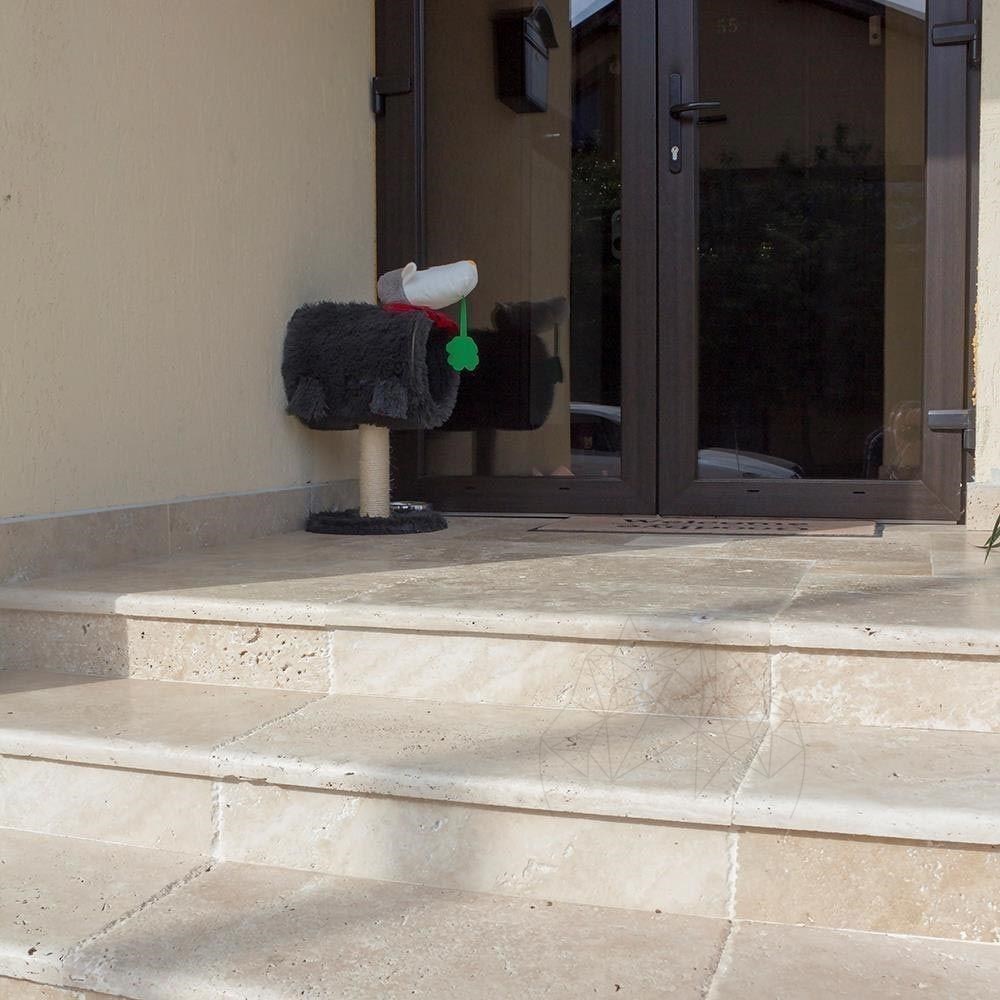 Travertin Classic Cross Cut Periat + Baston 1L, 61 x 30.5 x 3 cm – soluția ideală pentru trepte de scări și borduri de piscină.