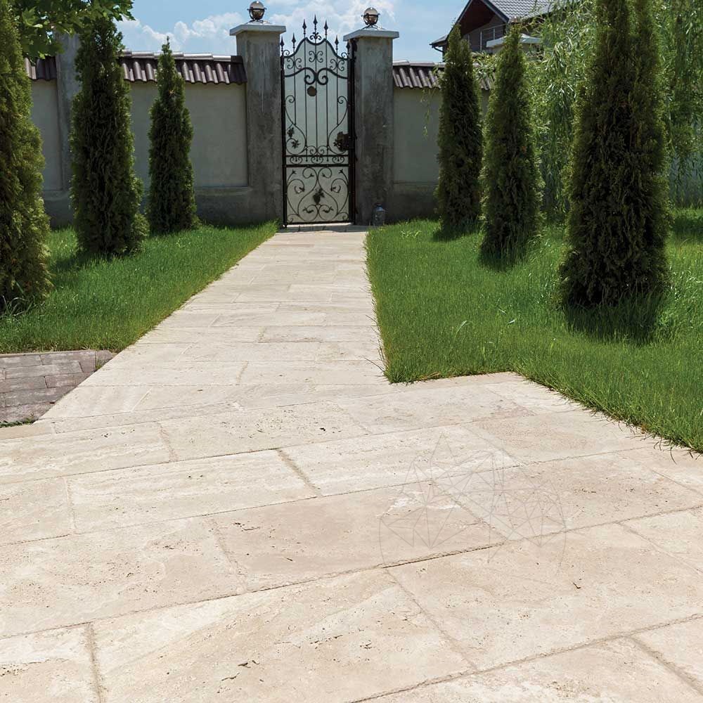 Un produs mai mare si mai frumos! Travertinul Classic, cu finisaj periat si daltuit pe margini este perfect pentru orice terasa, parcare sau alei pietonale. Acest produs poate fi folosit de asemenea direct pe pamant pe post de pas japonez, singura cerinta fiind stratul de nisip asezat inainte.