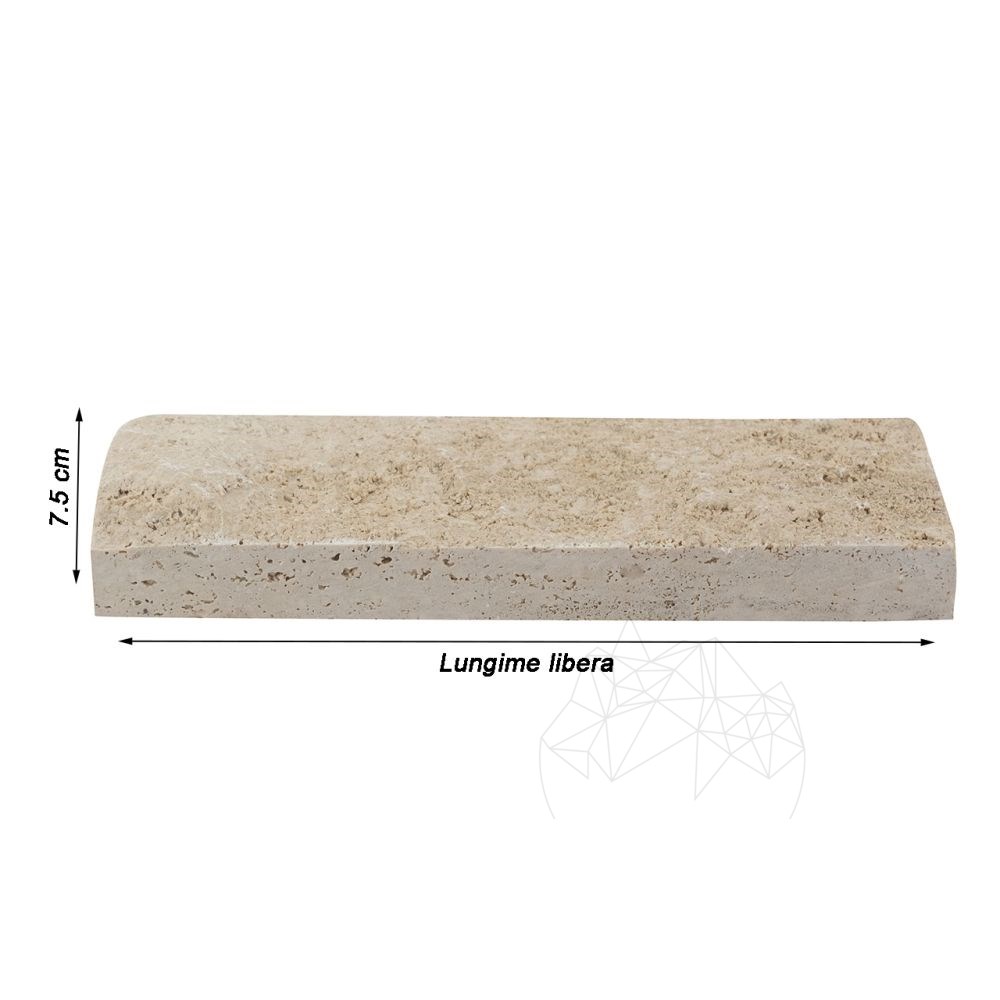 Travertinul Classic se livreaza cu dimensiunile 7.5 cm x LL x 2.2 cm, finisaj scapitat.