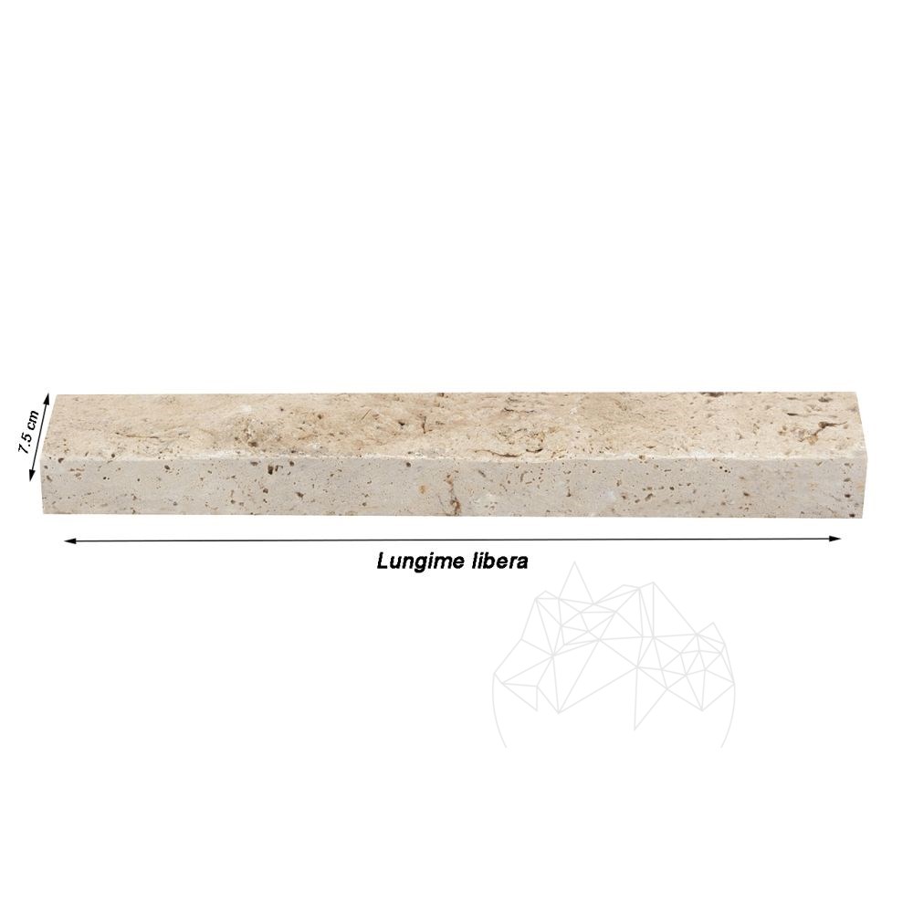 Pentru acest tip de produs, lungimile sunt libere, variabile, va recomand produsul Travertin Multicolor Scapitat 10cm x LL x 2.2 cm.