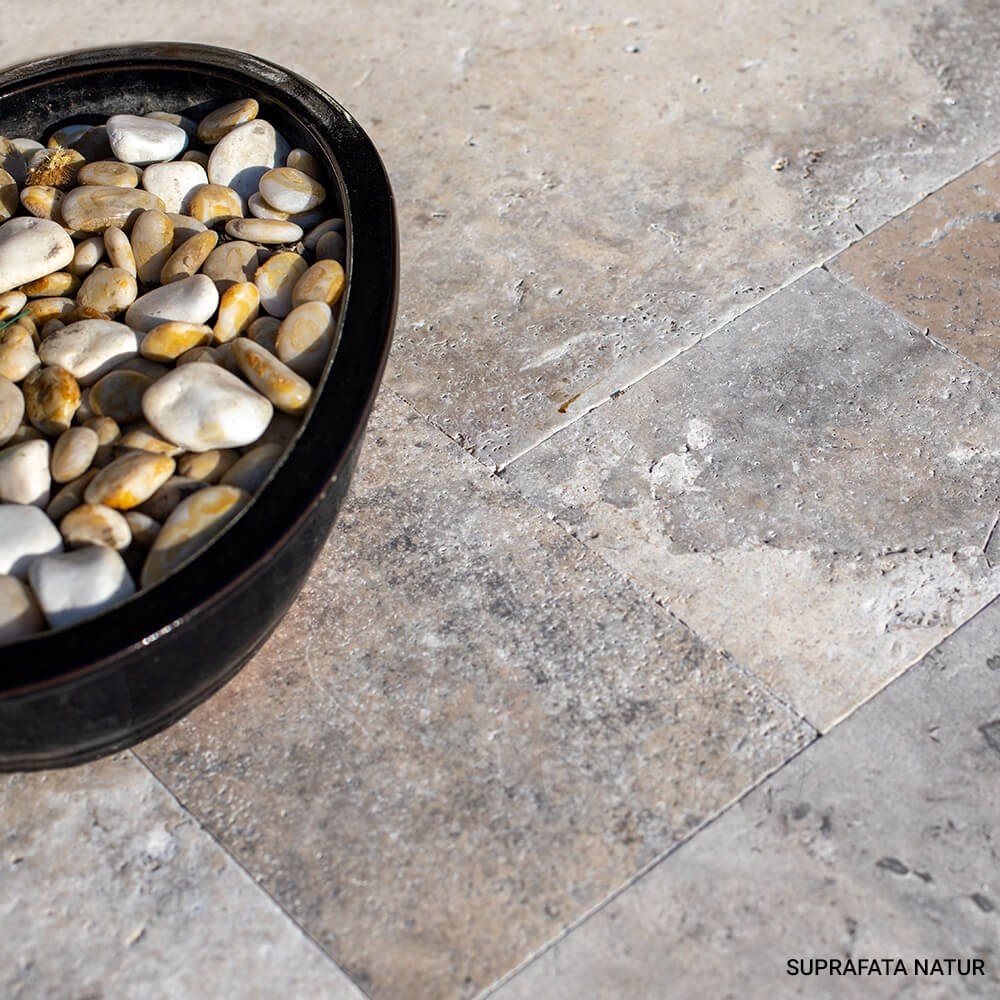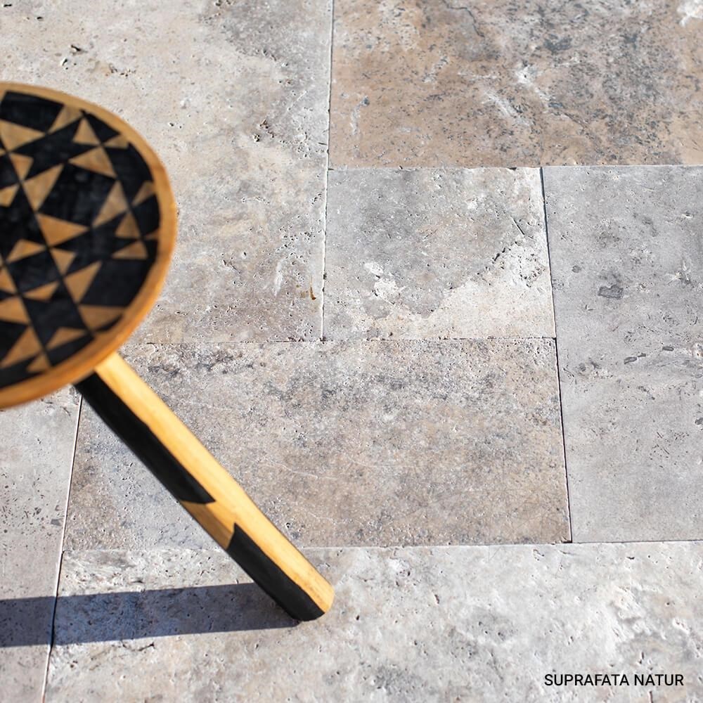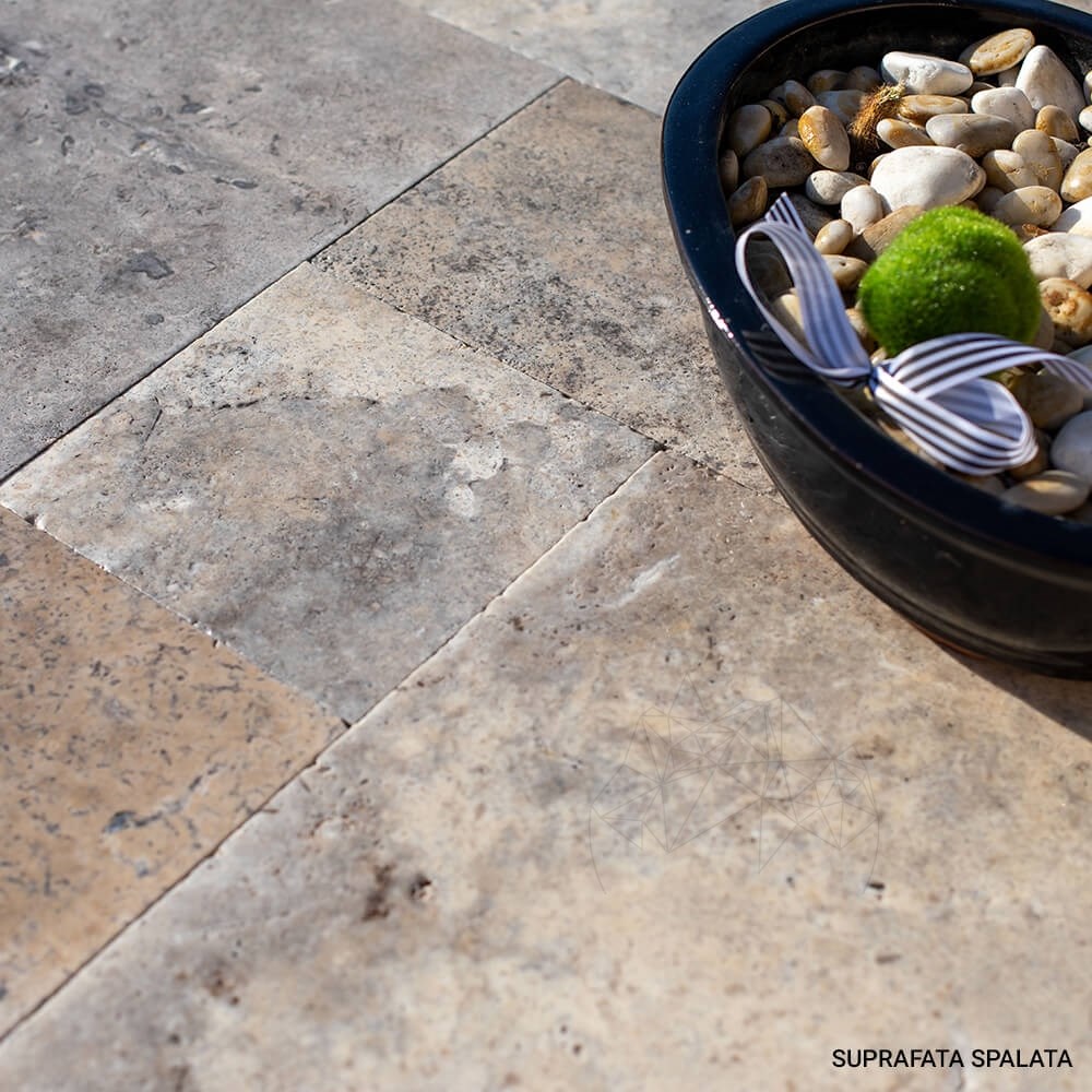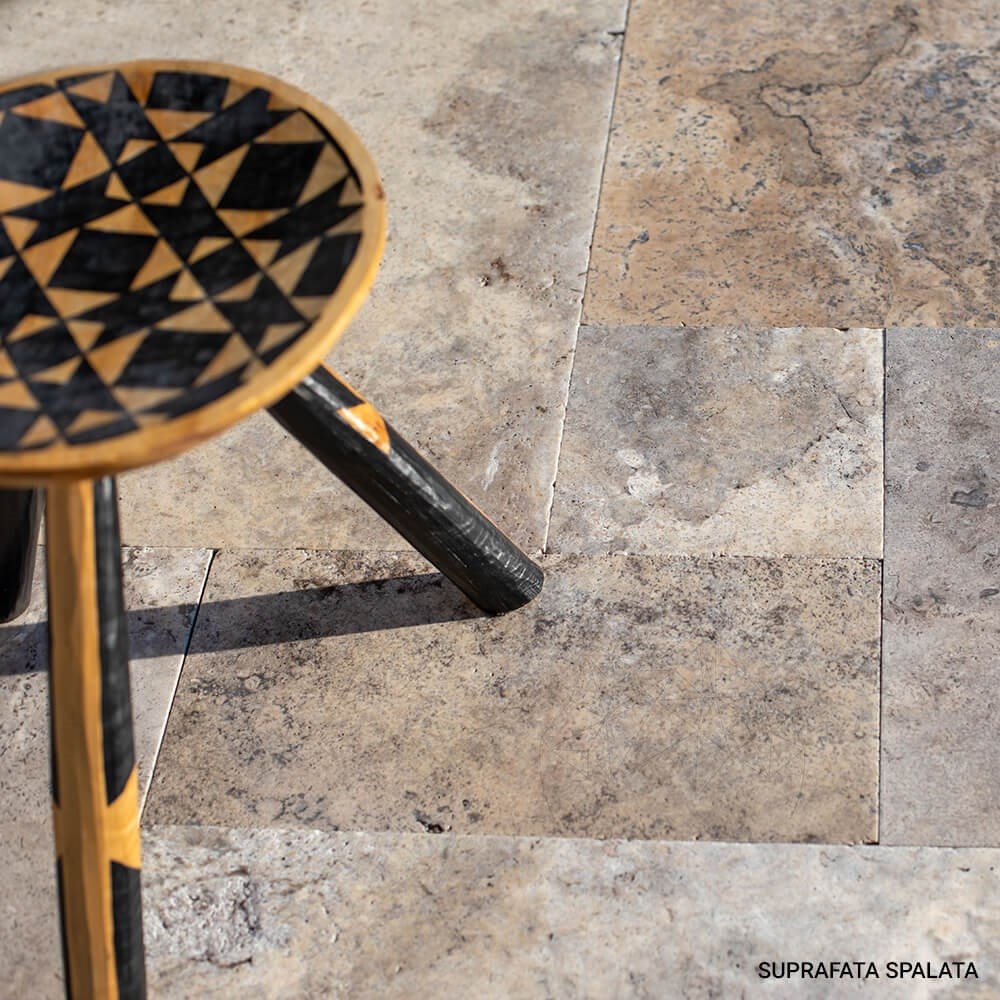 Intre toate celelalte tipuri de travertin, cel Silver este cel mai linistit, fiind o piesa care prin natura sa completeaza amenajarile in care este folosit. Importat din Turcia, travertinul Silver Cross Cut French Pattern este ideal pentru proiectele HoReCa, dar si pentru proiectele rezidentiale, de interior si exterior, dovedind o rezistenta deosebita la ciclul inghet/dezghet. Placile asociate in  French Pattern sunt dedicate placarilor de pardoseli, iar grosimea de 1.2 cm indica posibilitatea de a le folosi deopotriva pentru amenajarile de interior si exterior. Finisajul periat al travertinului Silver Cross Cut French Pattern aduce amenajarii un strop de arhaism, fiind o piatra naturala potrivita pentru stilurile de amenajare modern, clasic si traditional romanesc.