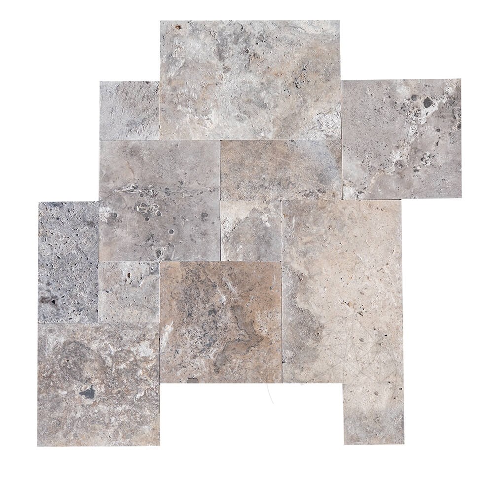 Travertin Silver Cross Cut French Pattern Set Periat, 1.2 cm