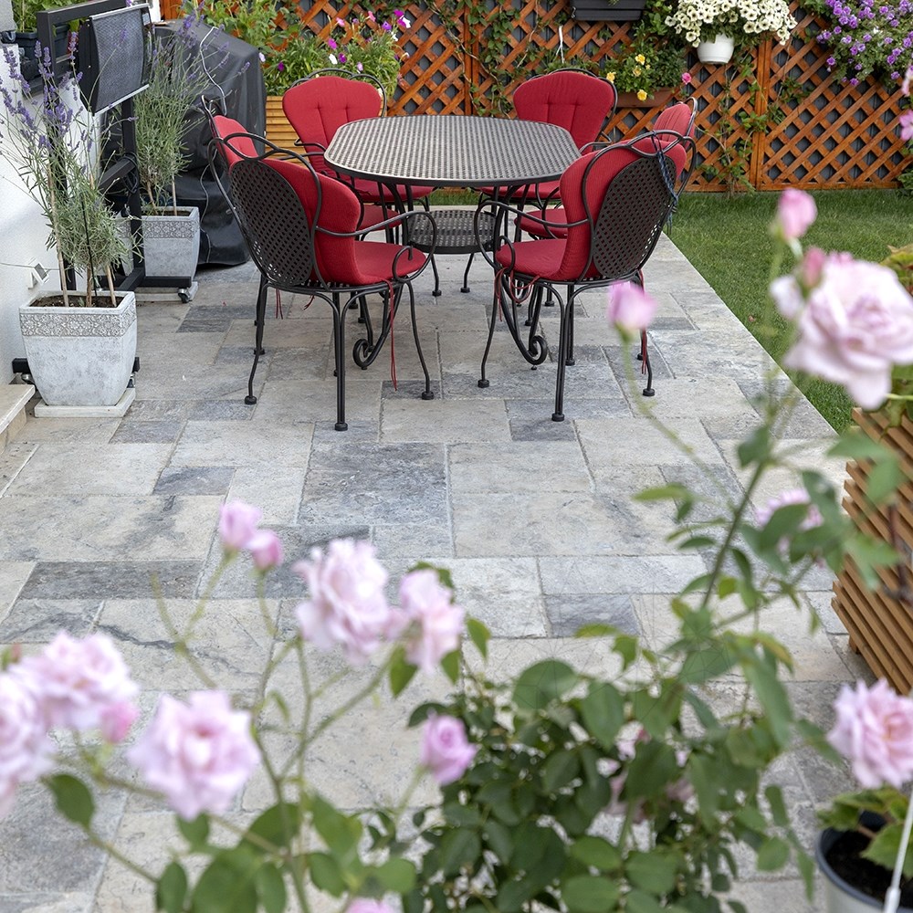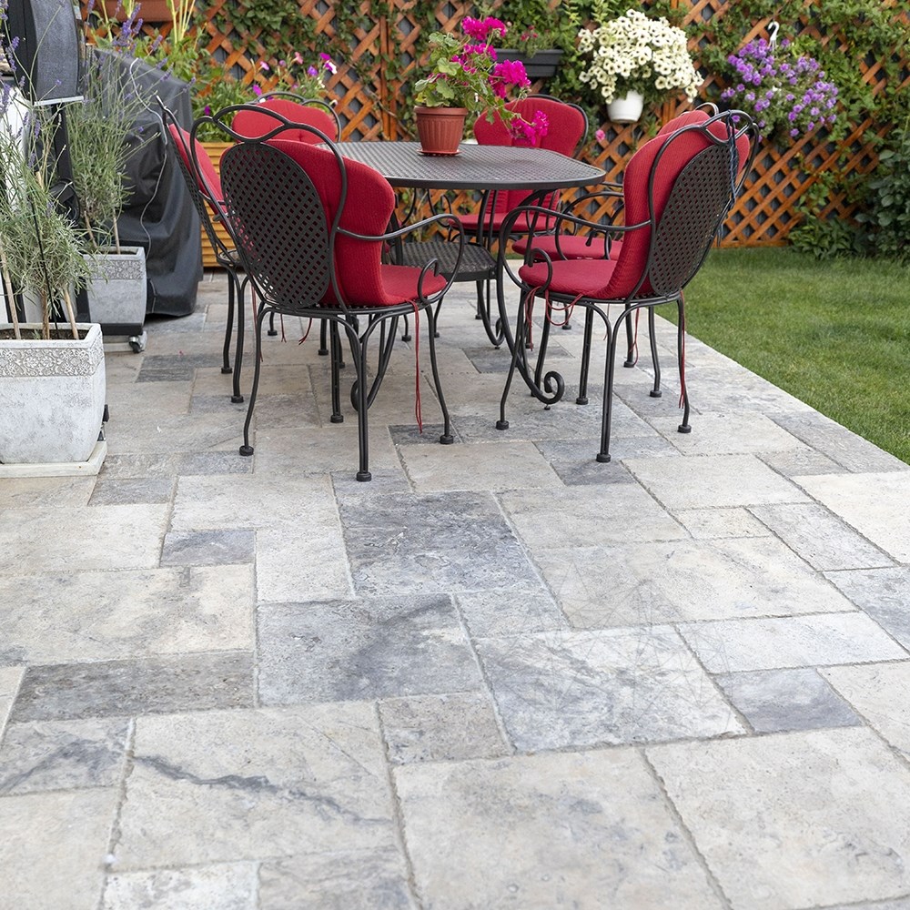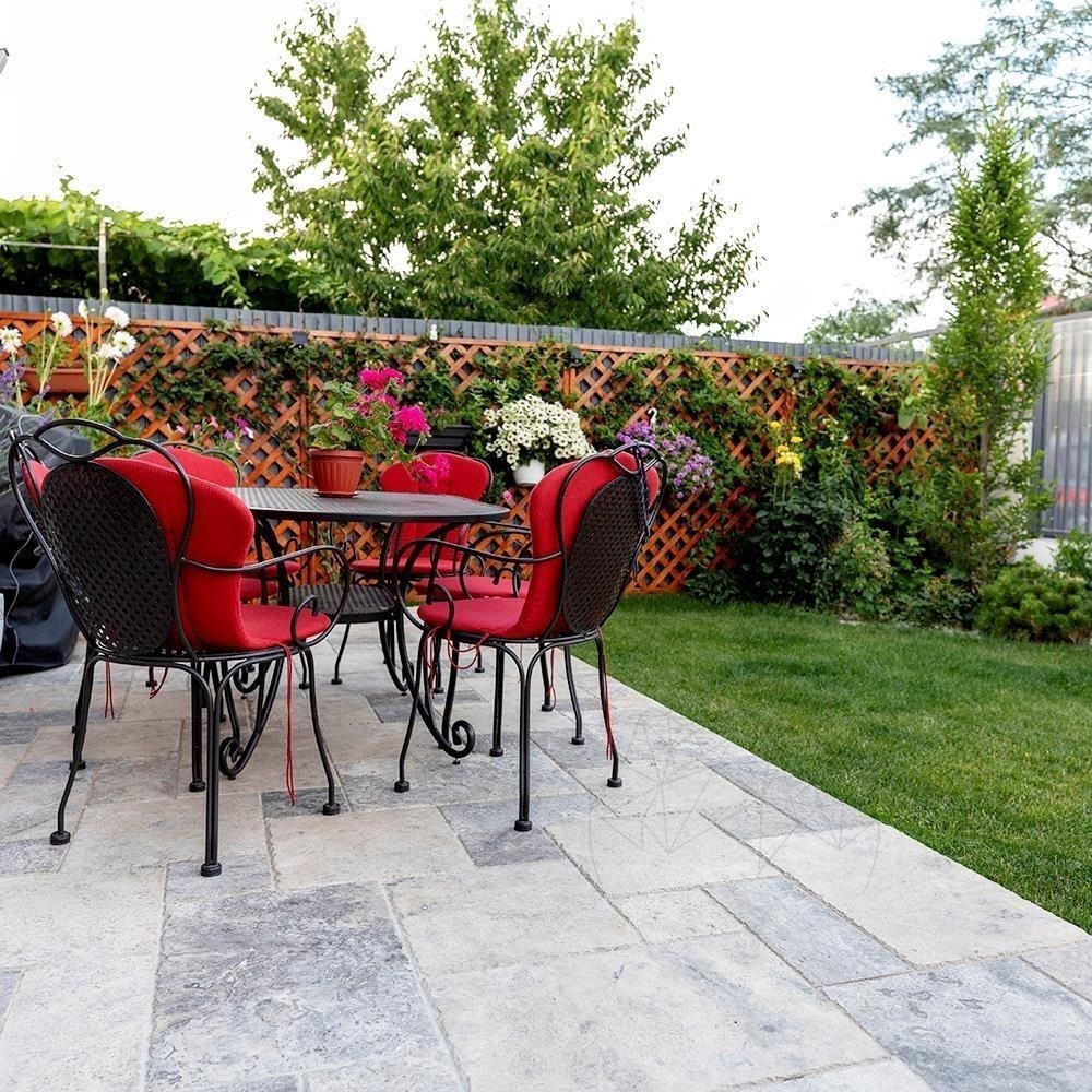 Pavajul exterior din travertin Silver French Pattern la 3cm imbina eleganta cu rezistenta pietrei naturale. Finisajul sau consta intr-o periere a suprafetei si o daltuire a marginiilor, ceea ce il face antiderapant. Datorita grosimii de 3 cm, travertinul Silver French Pattern se poate folosi in gradini, pavaje publice, holuri de trecere, acoperite si neacoperite, borduri piscina, terase etc. Culorile sale calde (mix de crem si gri) il recomanda ca usor asortabil la alte elemente de decor. Potentialul sau eclectic este impresionant, putand deveni fundalul unor stiluri ambientale de la chic sau rustic, pana la minimalist sau industrial. Este usor de intretinut, fiind adesea intalnit atat in cadrul proprietatilor rezidentiale, cat si in cele publice. Eleganta casei tale nu trebuie sa se opreasca in prag, ci trebuie sa se reflecte si in modul in care iti amenajezi spatiul exterior, iar travertinul Silver French Pattern poate oferi o solutie ingenioasa si eleganta in acelasi timp.