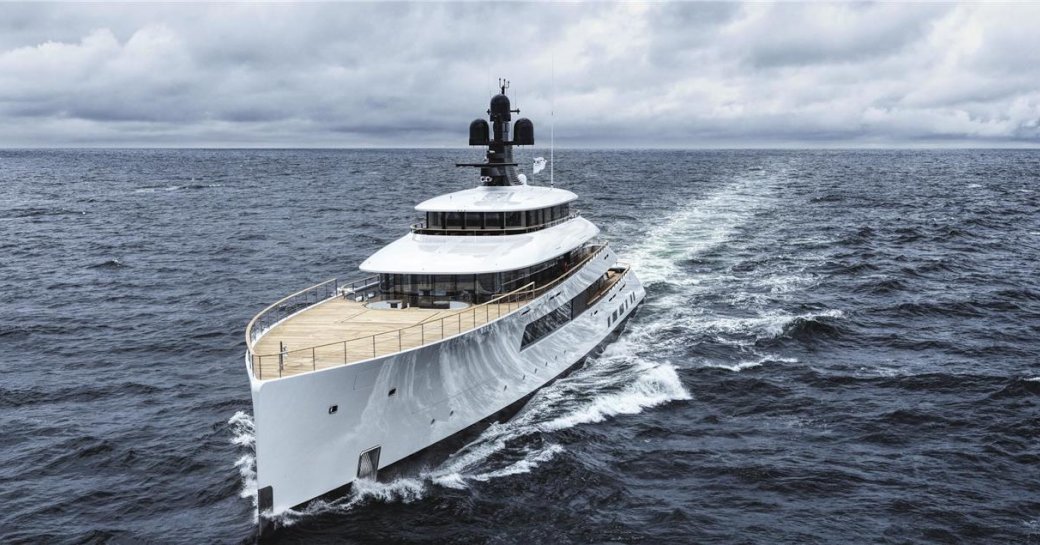 Elementele distinctive sunt puntile largi pentru distractie si relaxare, multiplele optiuni de dining-room, doua helipad-uri generoase si o gama larga de jocuri cu apa. Pe interior predomina lemnul de esenta usoara, suprafetele lacuite si marmura deschisa la culoare.
